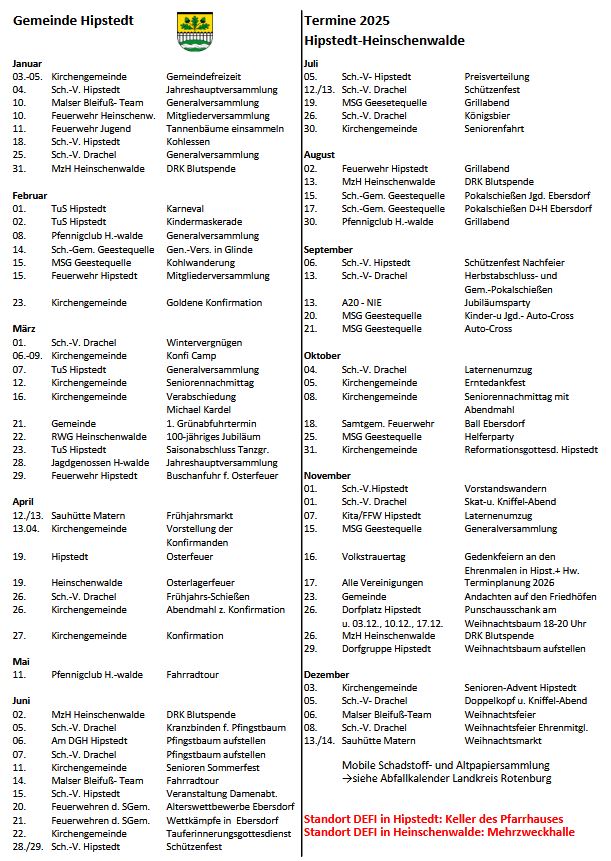 Gemeinsam mit der Freiwilligen Feuerwehr Hipstedt und dem Schützenverein tragen wir aktiv zum Gemeinschaftsleben in Hipstedt bei.